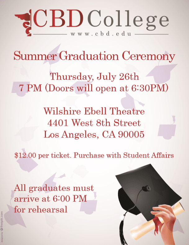 CBD College cannot wait to celebrate your accomplishment. Make sure to mark your calendars for July 26th!